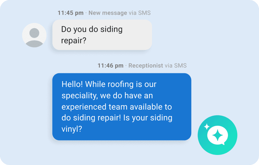 Put a 24/7 AI employee on the front lines to capture leads, answer questions, and deliver a seamless customer experience that wins business — and keeps it.